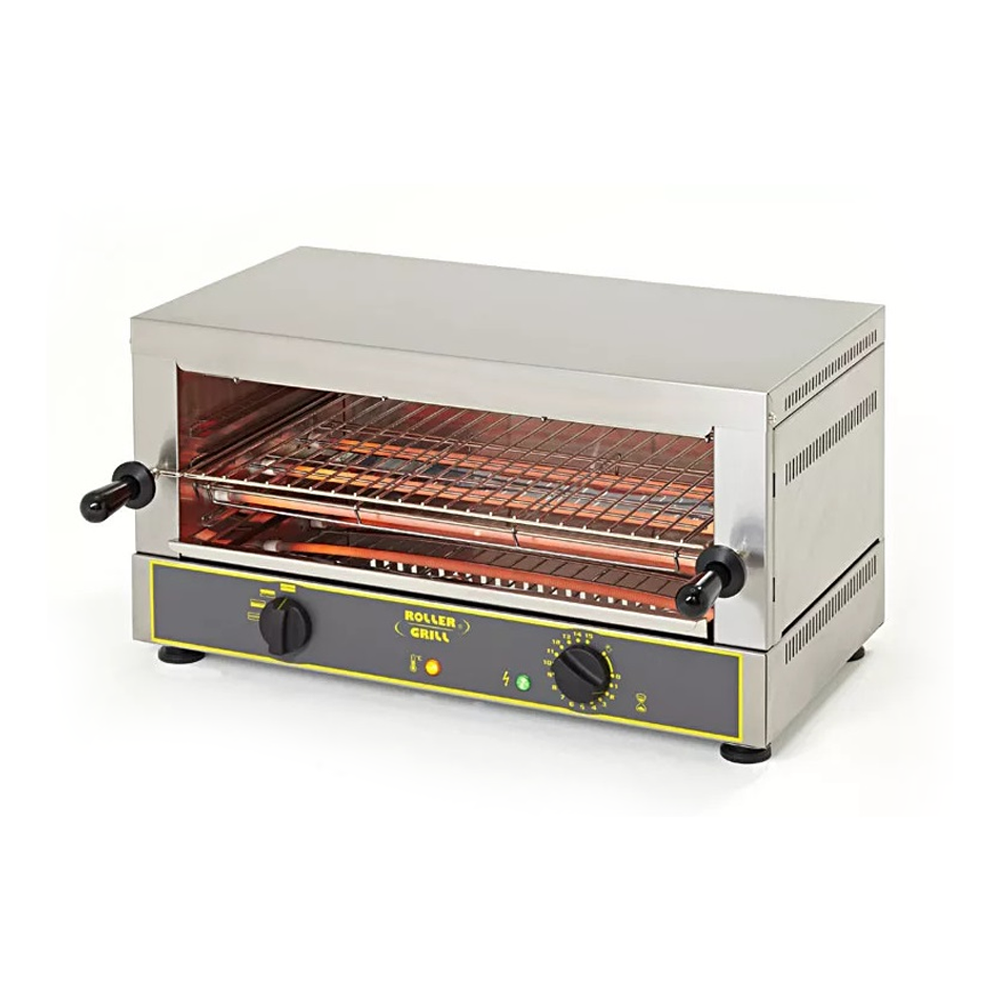 Features: selector for infrared quartz ramps, 15-minute-timer with lock position for non-stop use, control lights, patented protection grid for quartz tubes, crumb tray.