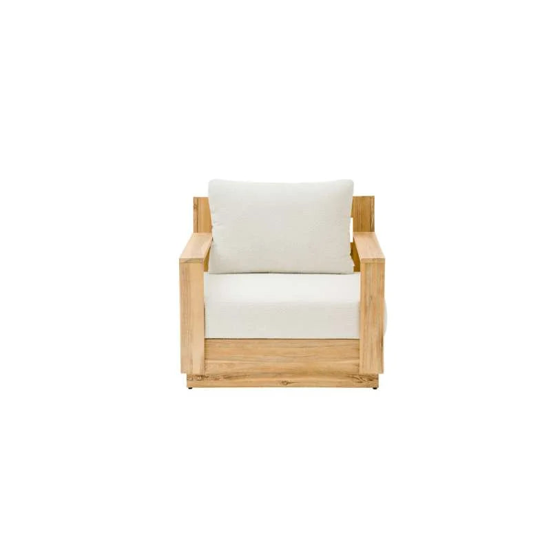 The Siena 5-Seater Sofa Set brings timeless elegance and robust craftsmanship to your outdoor space. Constructed from high-quality solid acacia wood and soft boucle olefin cushions, this set offers a harmonious blend of natural warmth and durability, making it perfect for year-round use.