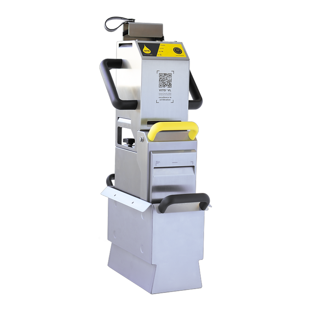 The VITO VL cleans the oil and provides an easy and hygienic filtration in the kitchen. Like every VITO oil filter system the VITO VL provides a microfiltration up to 5 µm (200µin). As an additional feature no chemicals are needed to clean the oil, which preserves the optimal taste of the fried dishes. The unique design makes sure the VITO can handle temperatures up to 200°C (392°F) and provides highest safety at work, because of avoiding direct contact with the hot oil. After filtration the oil can be immediately used for frying again.